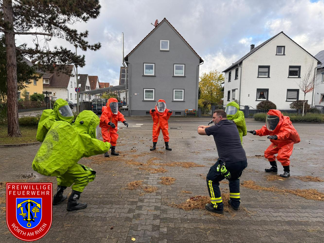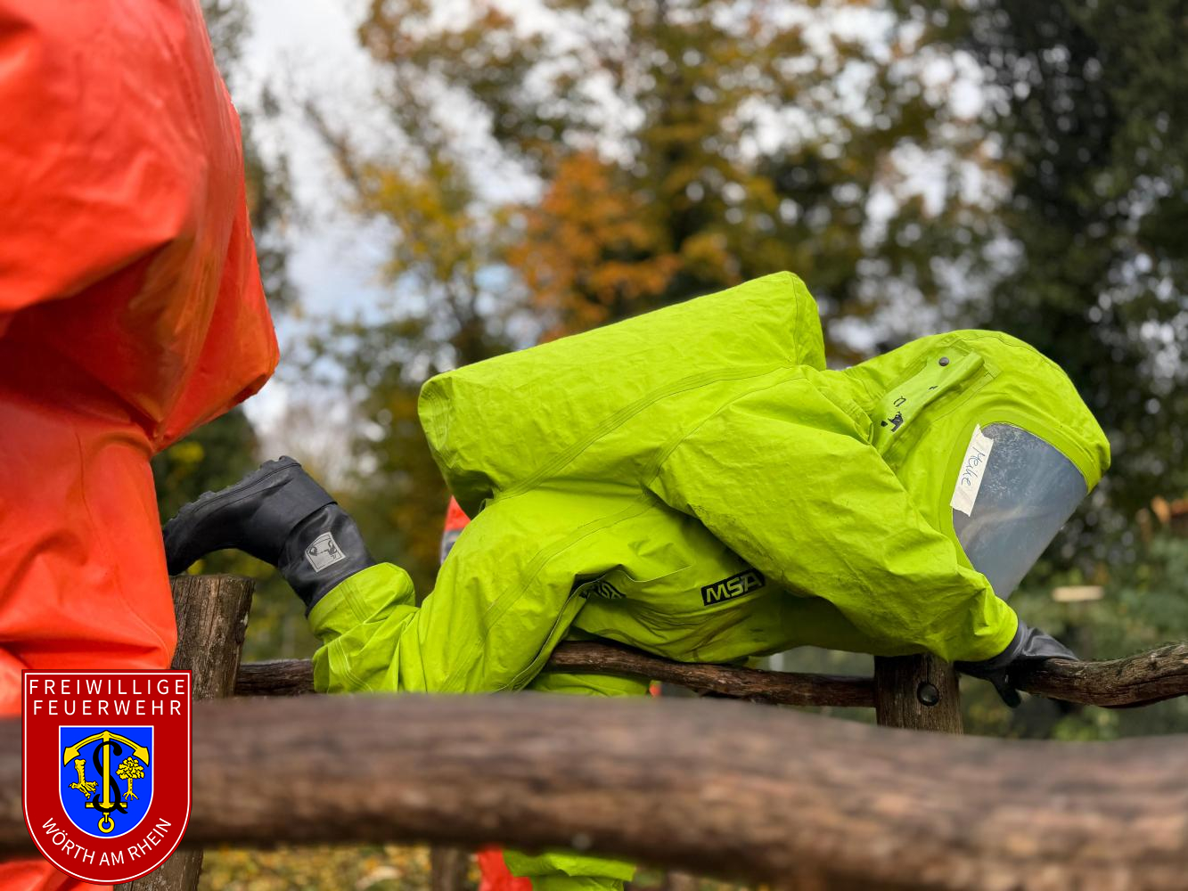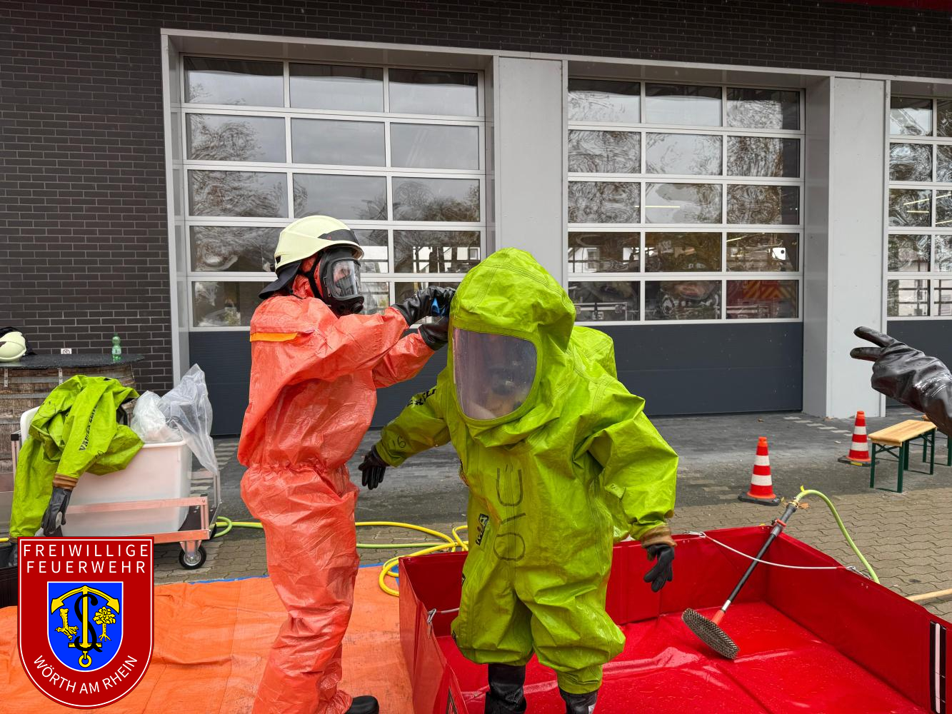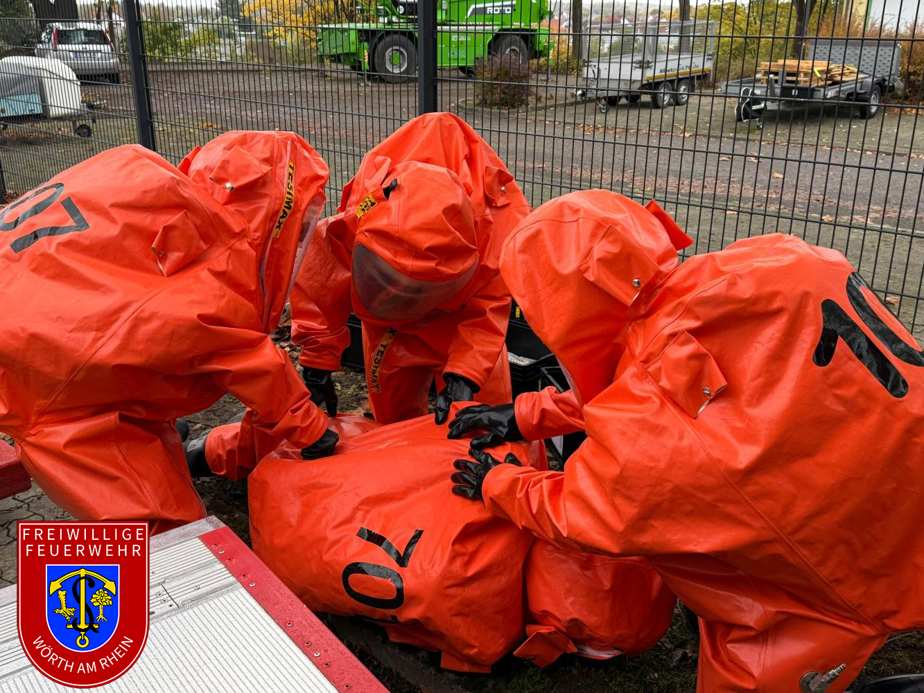 In der Theorie wurden Grundlagen, Aufbau, Typen und Grenzen der Schutzanzüge sowie das richtige Verhalten in Gefahr- und Notsituationen vermittelt. Der Praxisteil bot anschließend die Möglichkeit, dies unter realitätsnahen Bedingungen umzusetzen: Hindernisparcours, Geschicklichkeitsübungen, das Umpumpen von Gefahrstoffen sowie die Rettung eines verunfallten Trägers gehörten zu den zentralen Ausbildungsinhalten.