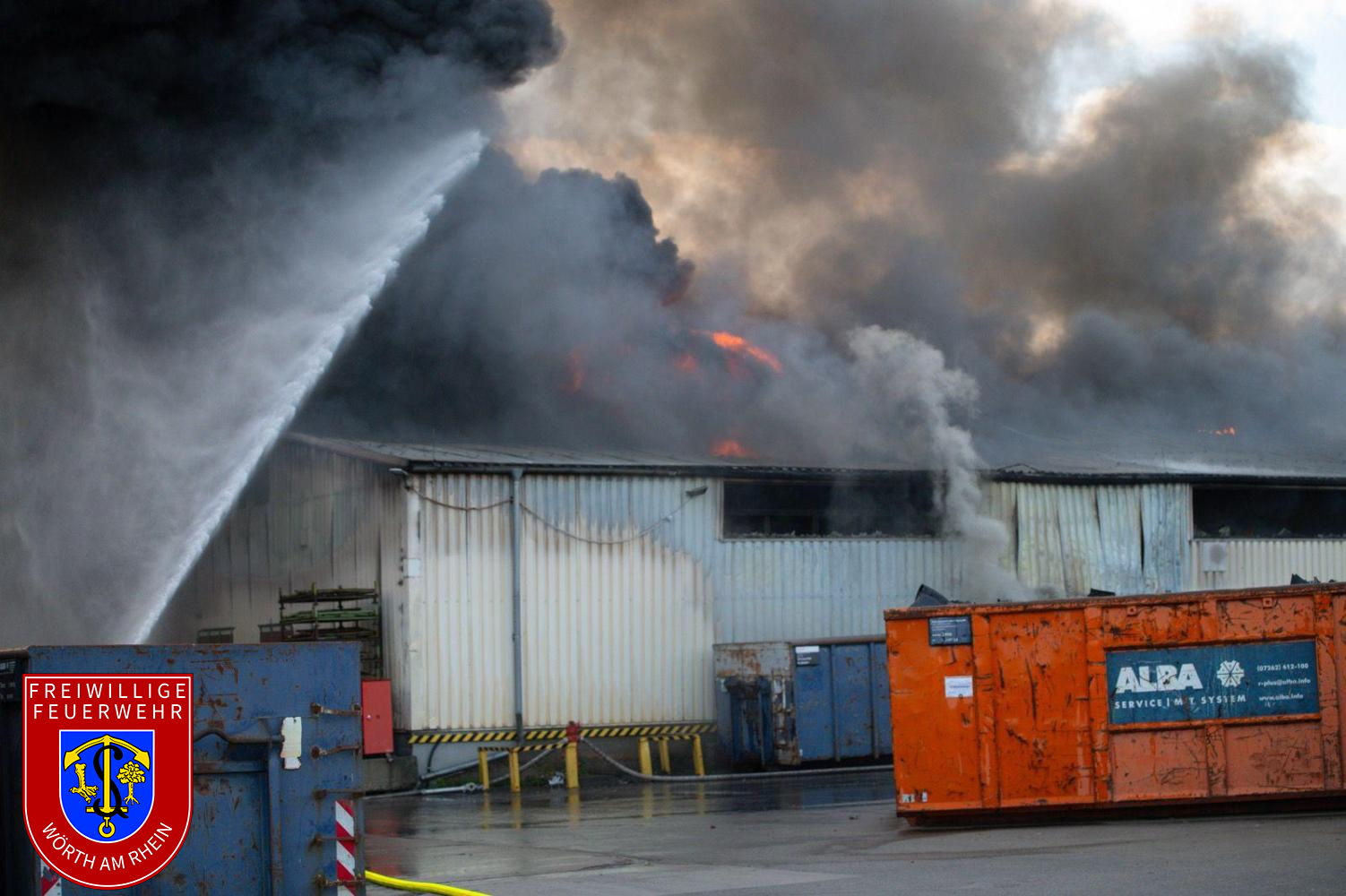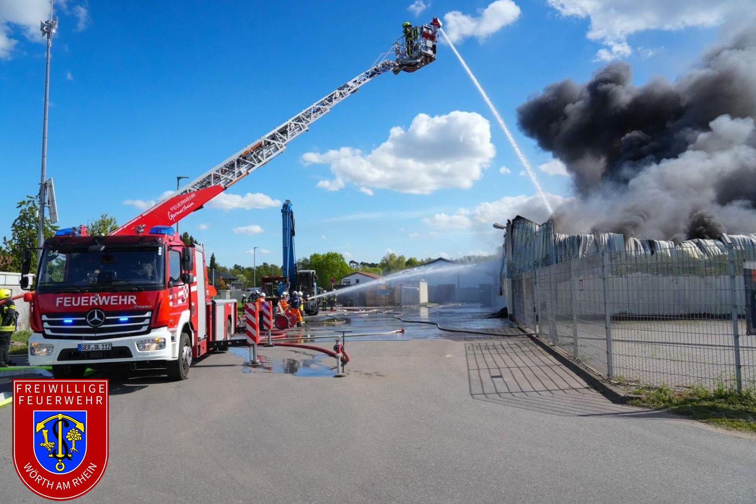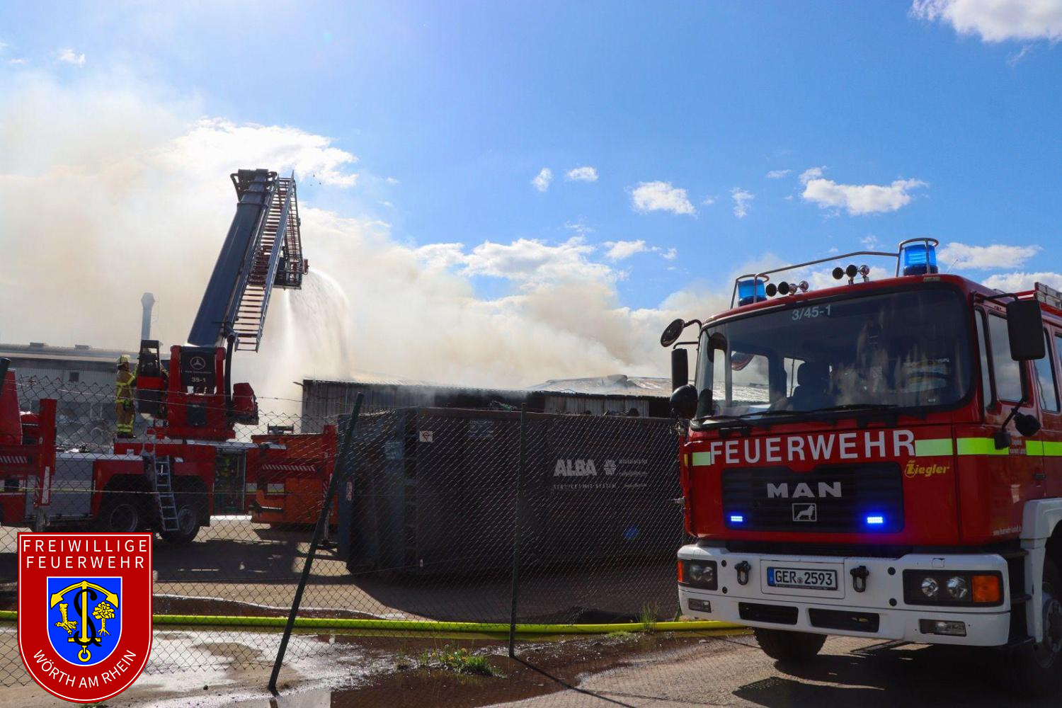 Am Montagnachmittag gegen 14:30 Uhr wurden die Einheiten der Feuerwehr VG Lingenfeld zu einem Brand auf dem Gelände der Firma Riwald Recycling in Lustadt alarmiert. Bereits auf der Anfahrt war eine massive schwarze Rauchsäule weithin sichtbar. Beim Eintreffen der ersten Einsatzkräfte brannte eine größere Menge Elektroschrott auf dem Betriebsgelände. Aufgrund der erheblichen Brandlast, der starken Rauchentwicklung sowie der komplexen Lage wurde umgehend Vollalarm für die Feuerwehren der Verbandsgemeinde Lingenfeld ausgelöst.