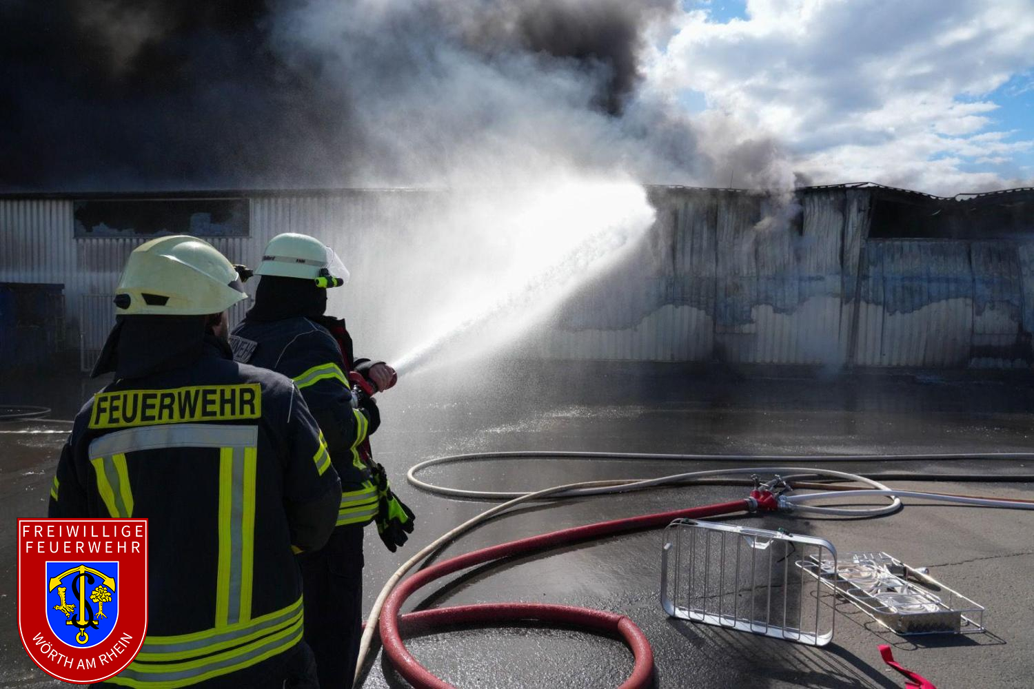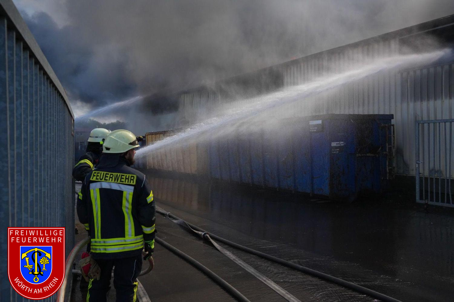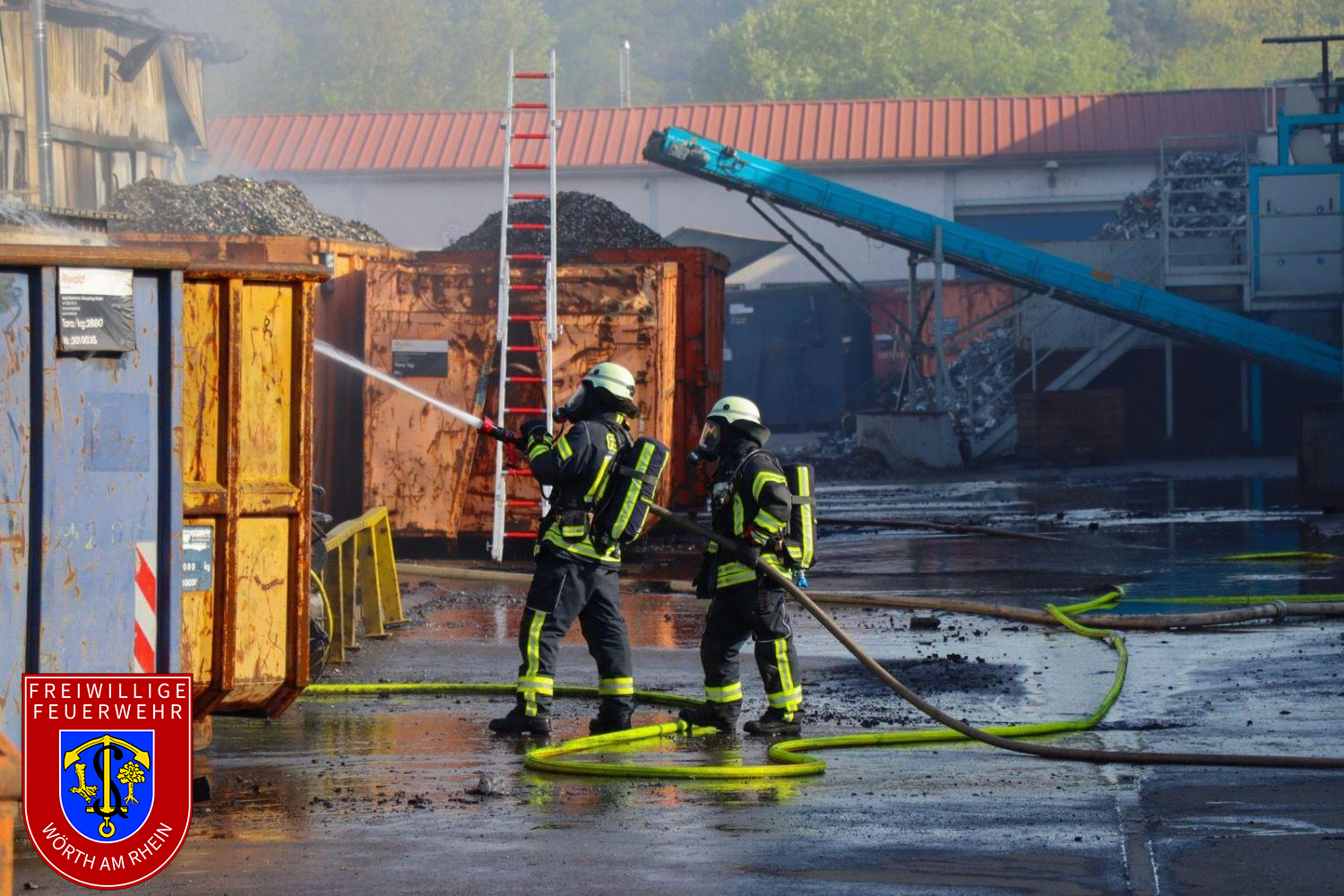 Am Montagnachmittag gegen 14:30 Uhr wurden die Einheiten der Feuerwehr VG Lingenfeld zu einem Brand auf dem Gelände der Firma Riwald Recycling in Lustadt alarmiert. Bereits auf der Anfahrt war eine massive schwarze Rauchsäule weithin sichtbar. Beim Eintreffen der ersten Einsatzkräfte brannte eine größere Menge Elektroschrott auf dem Betriebsgelände. Aufgrund der erheblichen Brandlast, der starken Rauchentwicklung sowie der komplexen Lage wurde umgehend Vollalarm für die Feuerwehren der Verbandsgemeinde Lingenfeld ausgelöst.