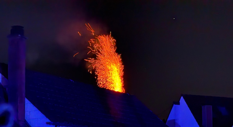 Bereits beim Eintreffen der ersten Einsatzkräfte war ein deutlicher Funkenflug aus dem Schornstein sichtbar. Die Kameraden aus Hagenbach kontrollierten den betroffenen Kamin, während der ebenfalls anwesende Schornsteinfeger die Reinigung durchführte und die Gefahr schließlich beseitigt werden konnte.